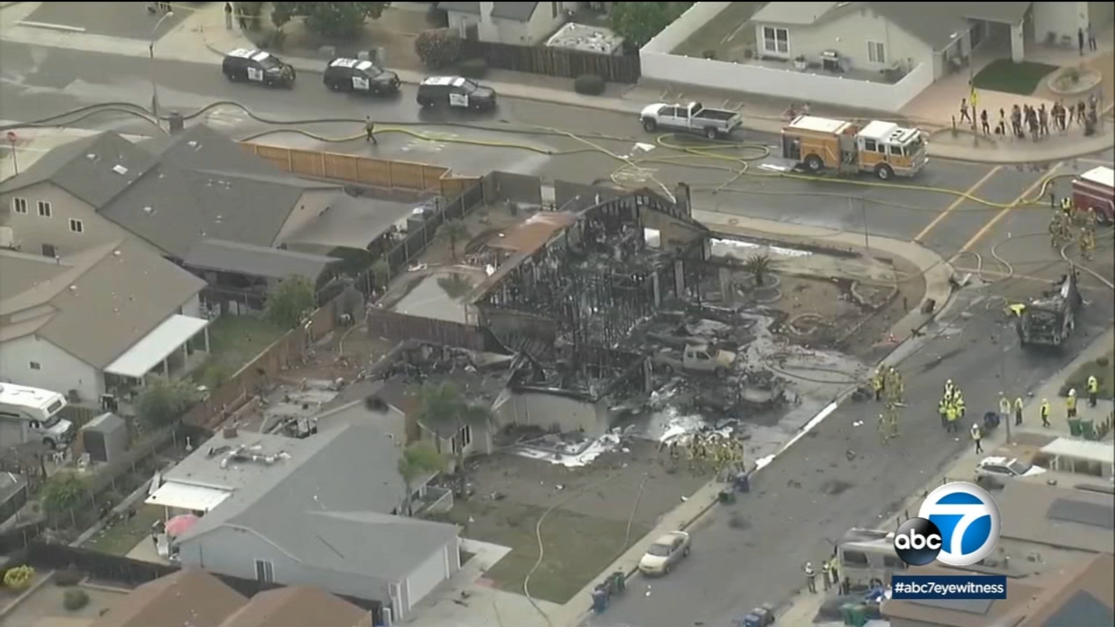 KGTV-TV, an ABC affiliate, posted video the station said it received from a viewer showing the plane arcing in the sky and then plunging into the neighborhood in a burst of flames.